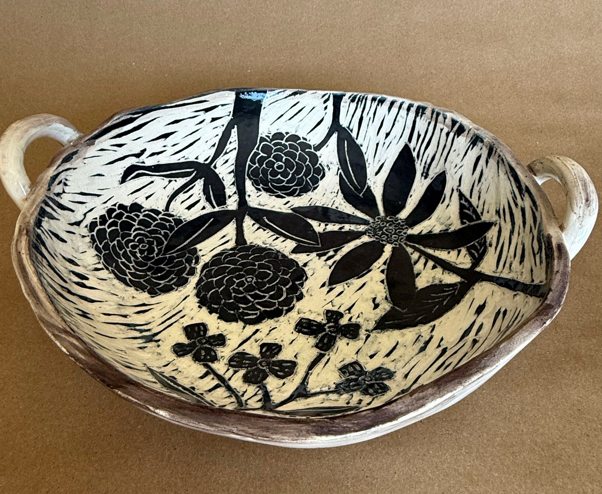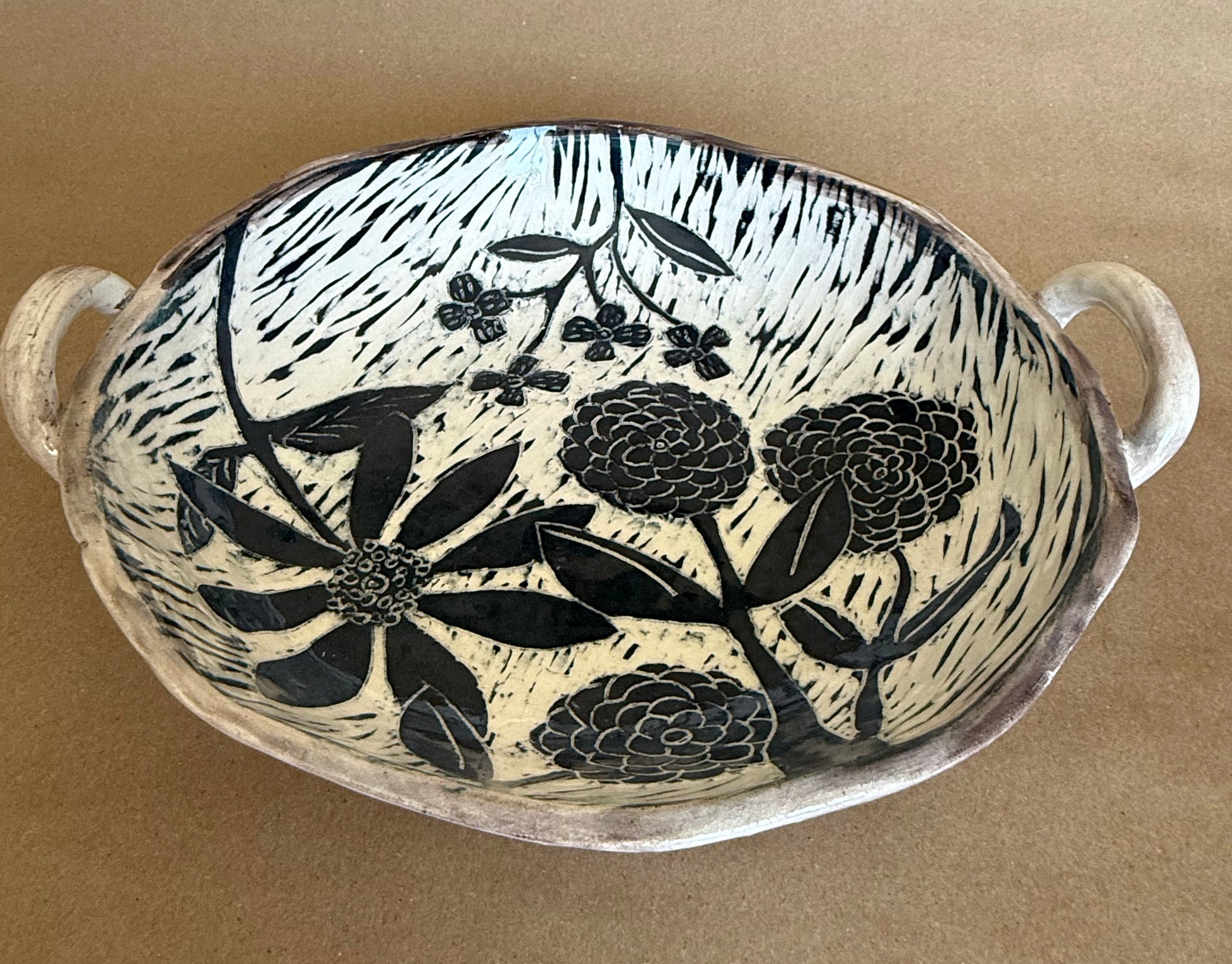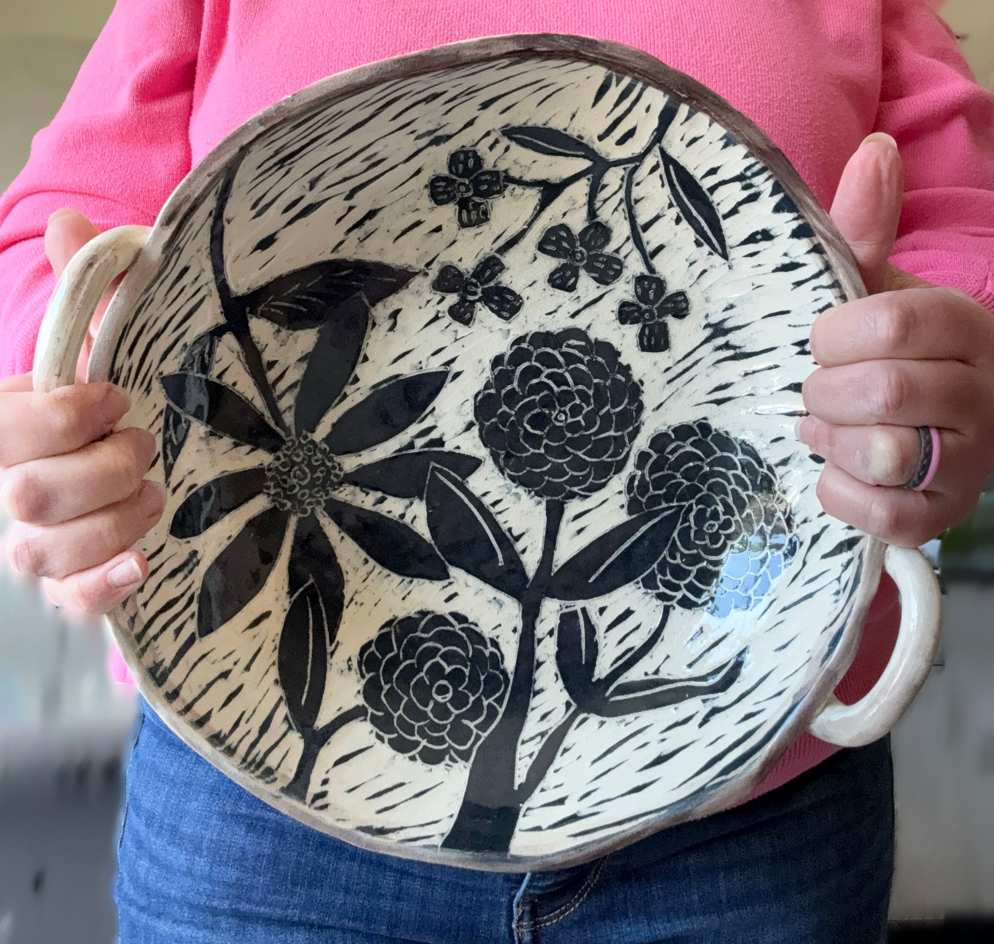 Show off your home cooking in style with a beautifully designed platter. With its bluish-black floral design and convenient handles, you can effortlessly transport anything from salads to cookies to the table. Make mealtimes a fun experience for everyone with this platter.