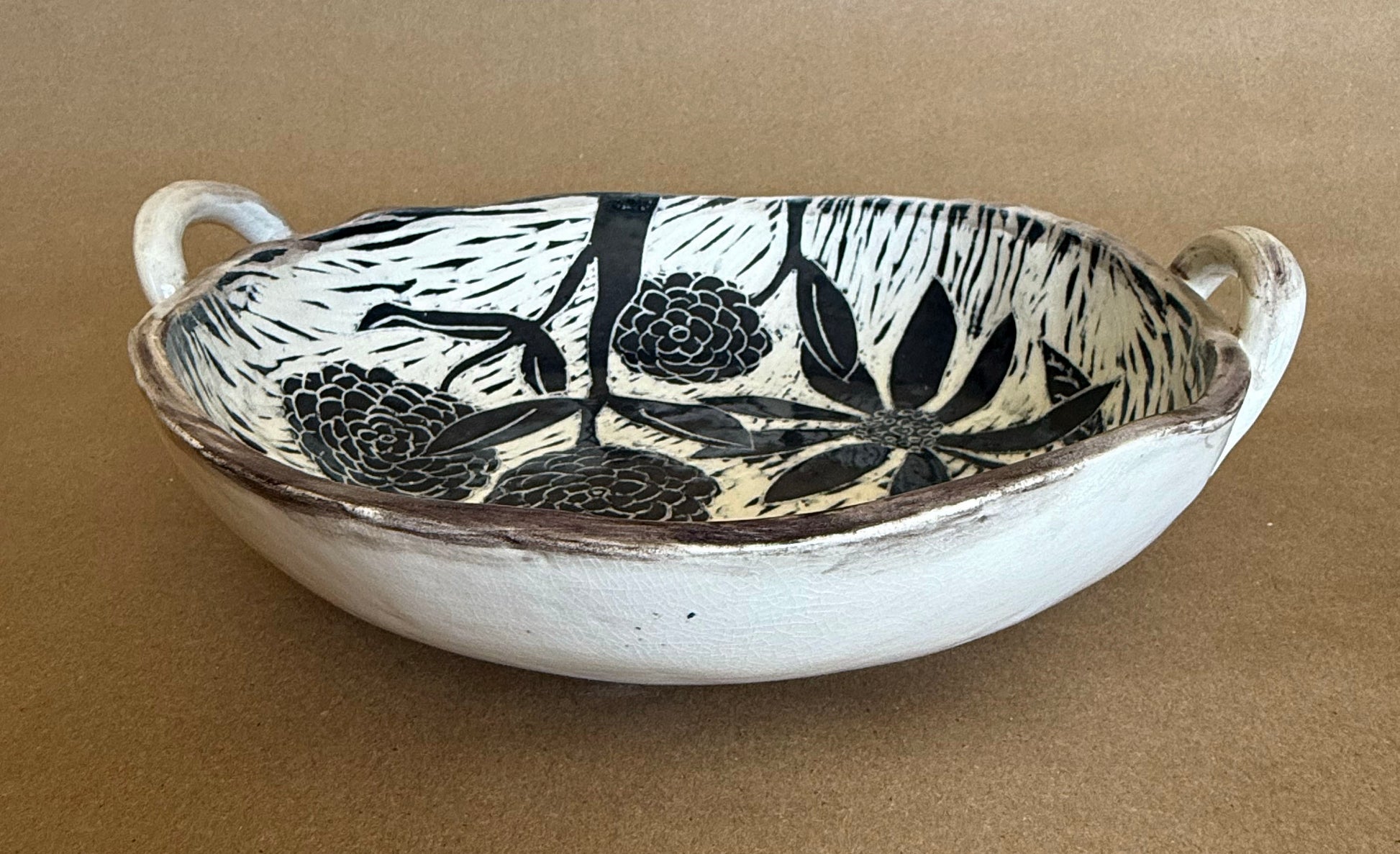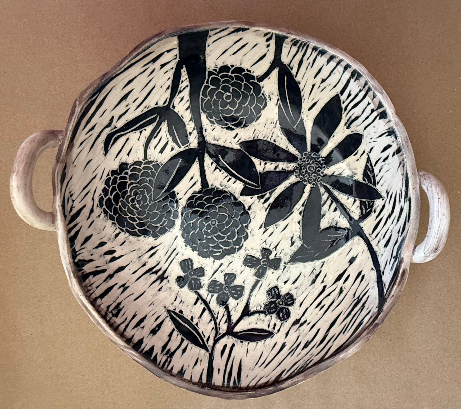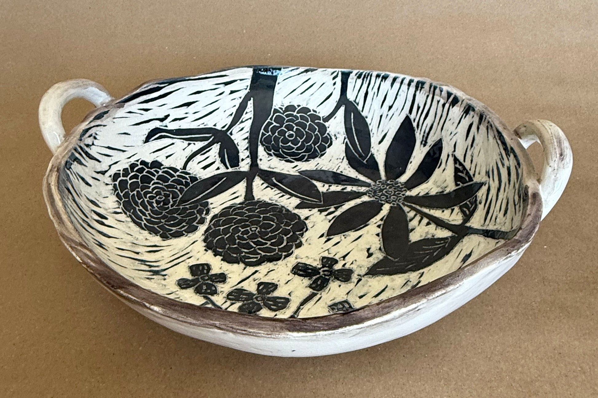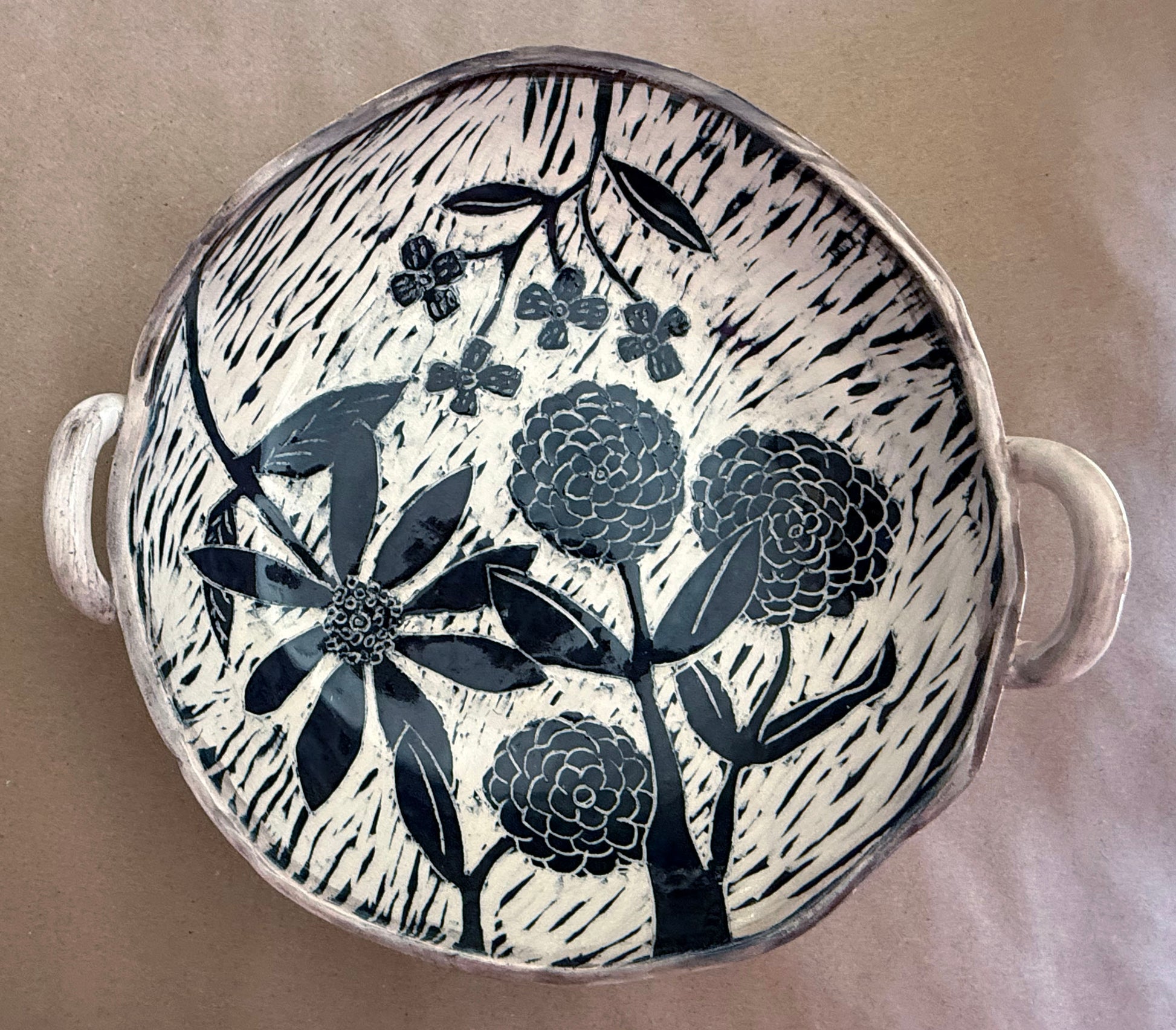 Show off your home cooking in style with a beautifully designed platter. With its bluish-black floral design and convenient handles, you can effortlessly transport anything from salads to cookies to the table. Make mealtimes a fun experience for everyone with this platter.