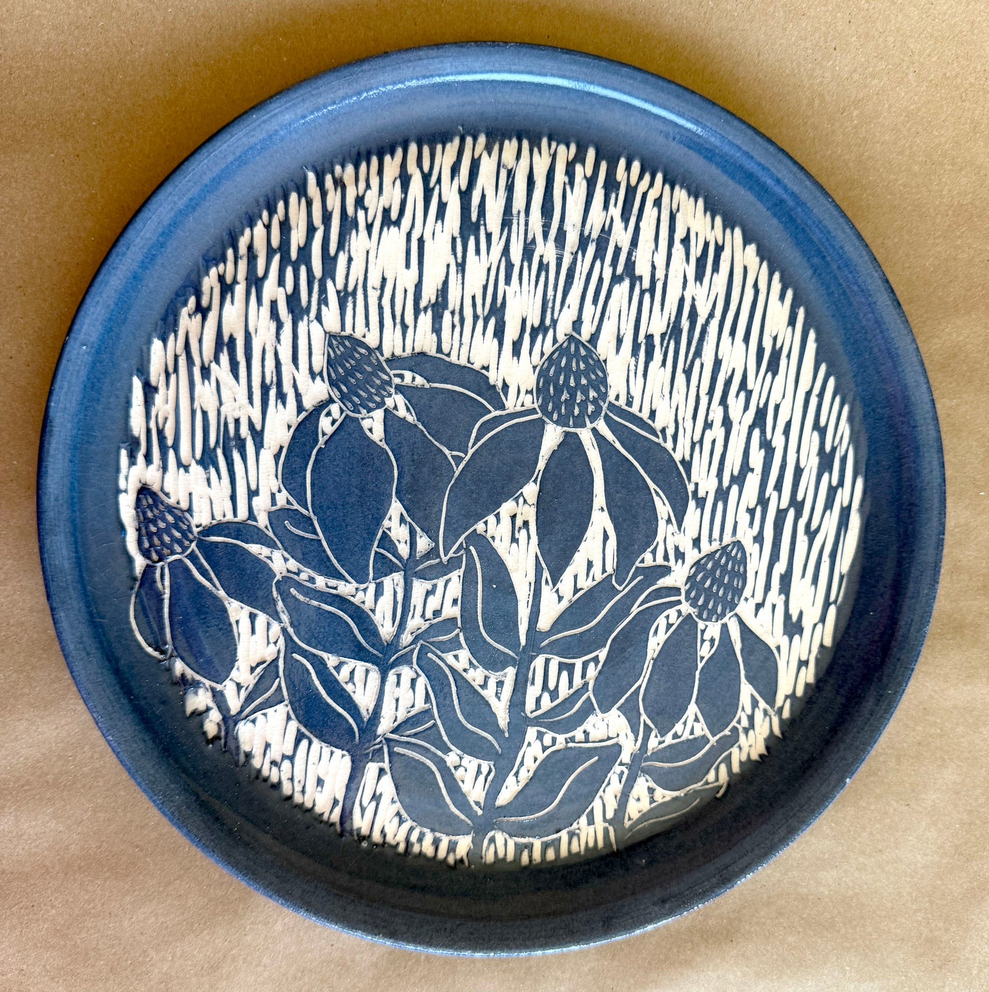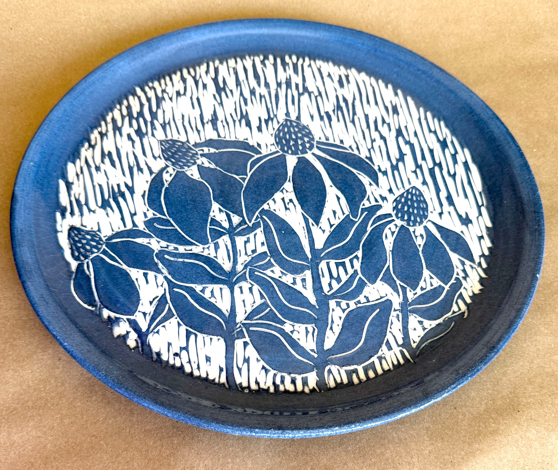 Show off your home cooking (or store bought delights) in style with a beautifully designed platter. With its blue floral design or black-eyed susans, you can add a touch of whimsey to any potluck or the week night supper table. Make mealtimes a fun experience for everyone with this platter.
